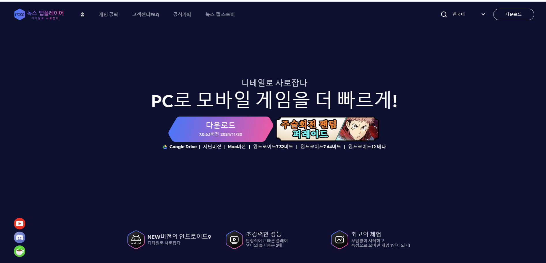 - 위의 링크나 웹사이트에 녹스 앱 플레이어를 검색하여 홈페이지에 접속합니다.