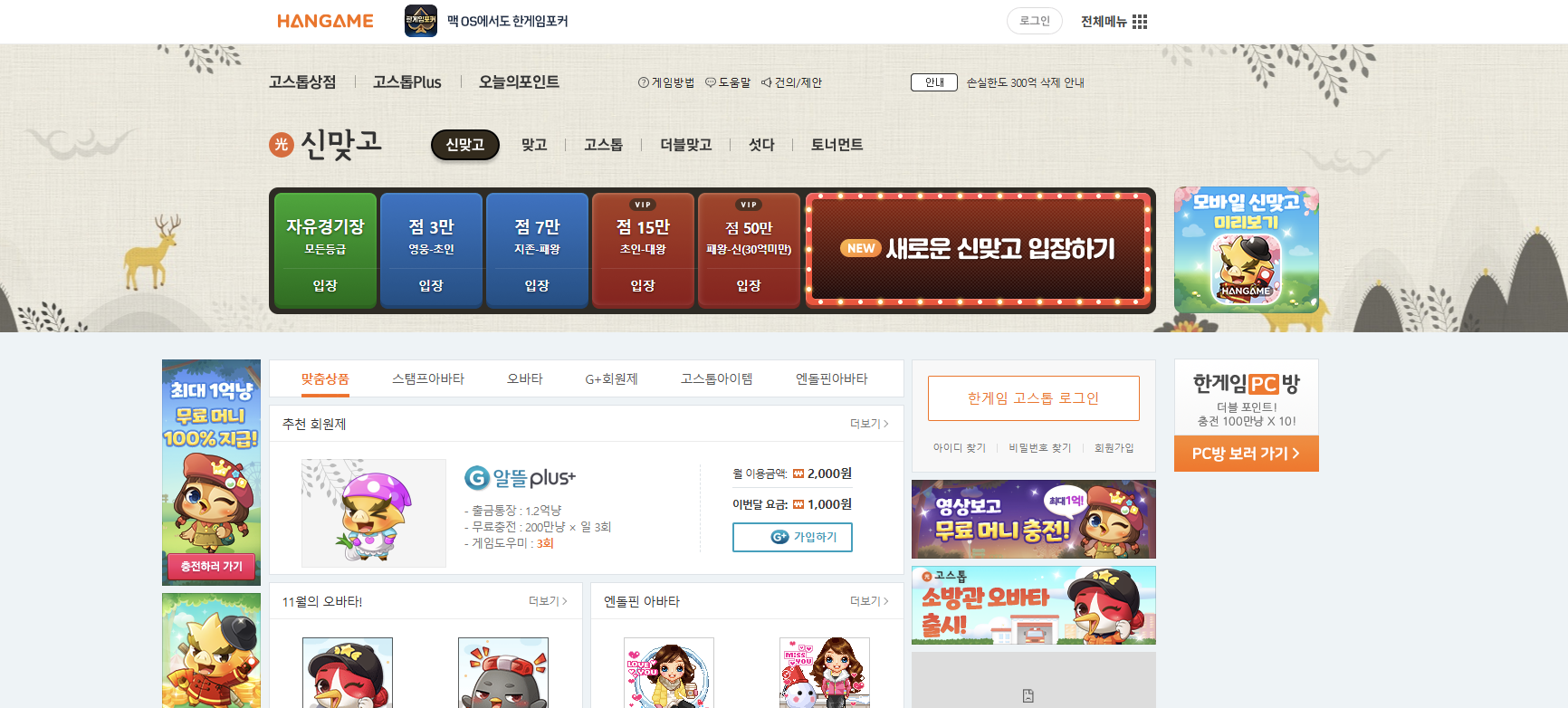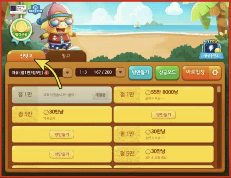설치가 완료된 후 게임에 접속하게 되면, 아래와 같은 화면이 뜰 것입니다. 여기서는 두가지 버전(신맞고, 맞고)으로 게임하실 수 있습니다. 게임 머니와 아이템은 공유되니 마음에 드는 버전의 게임을 즐기시면 됩니다.